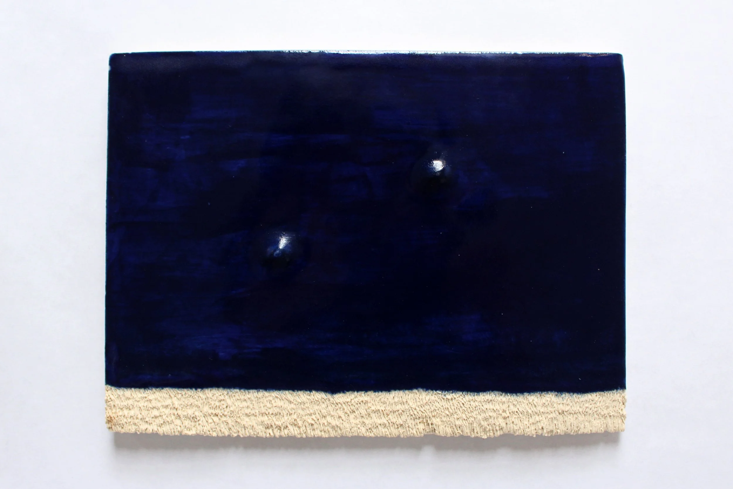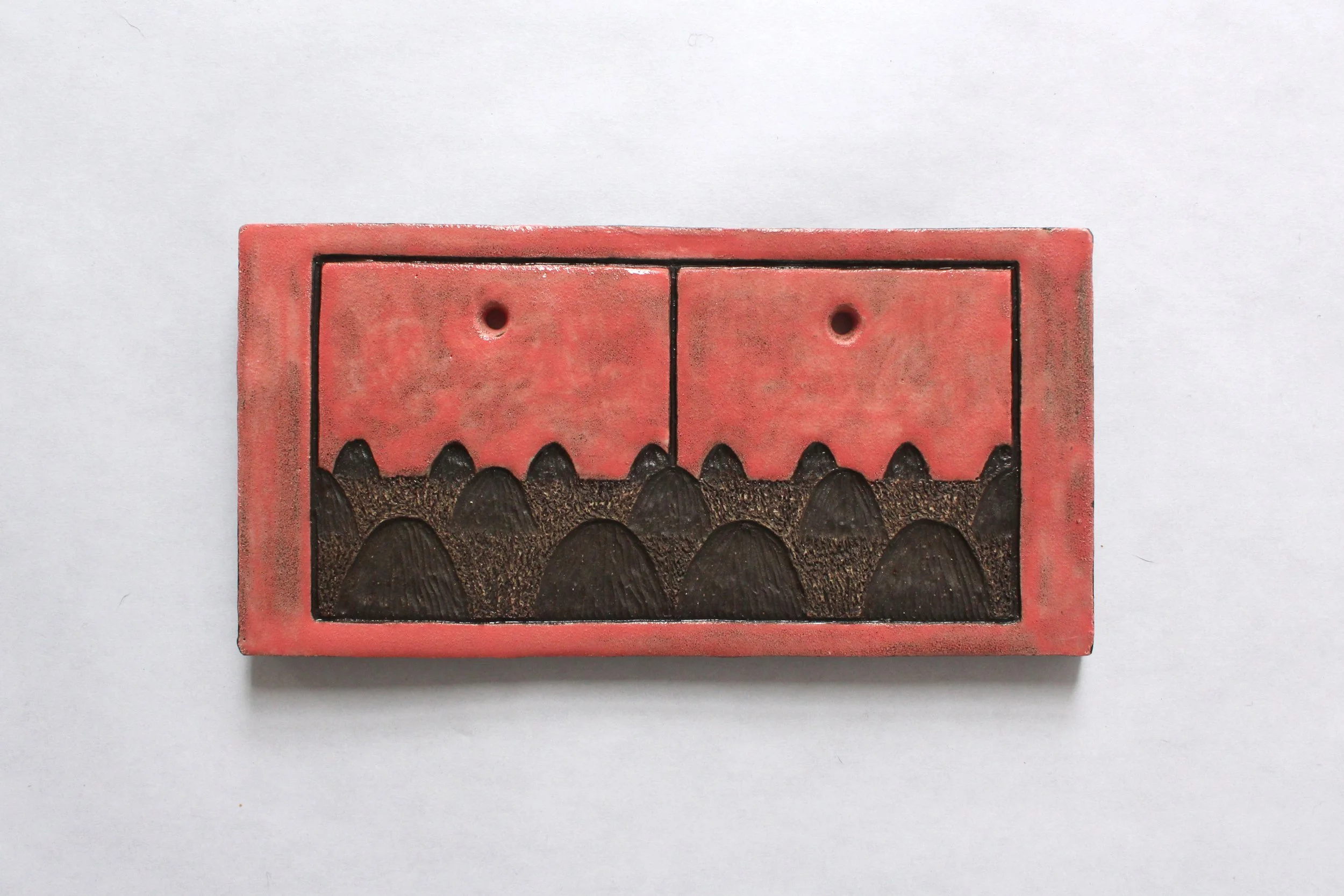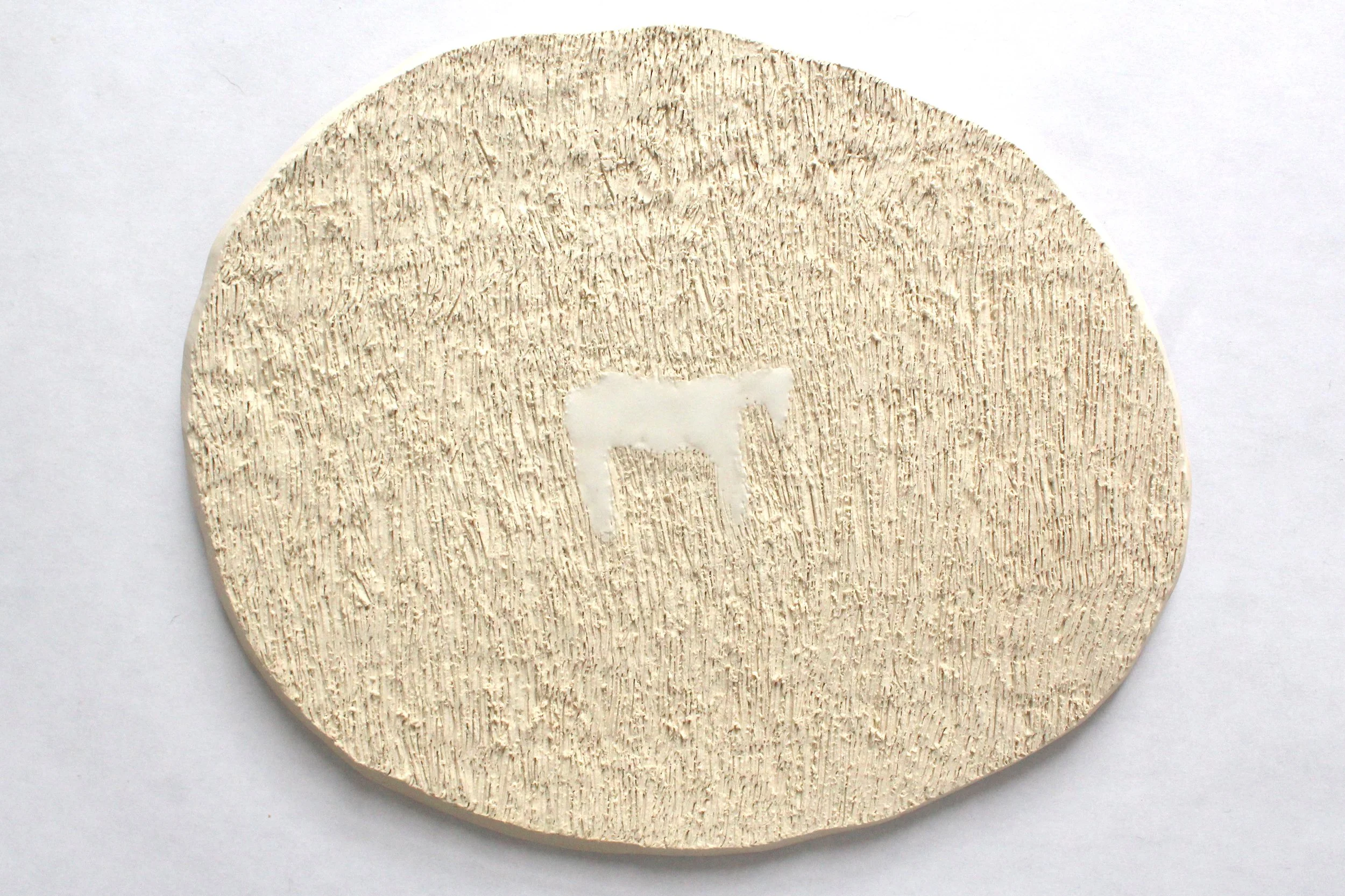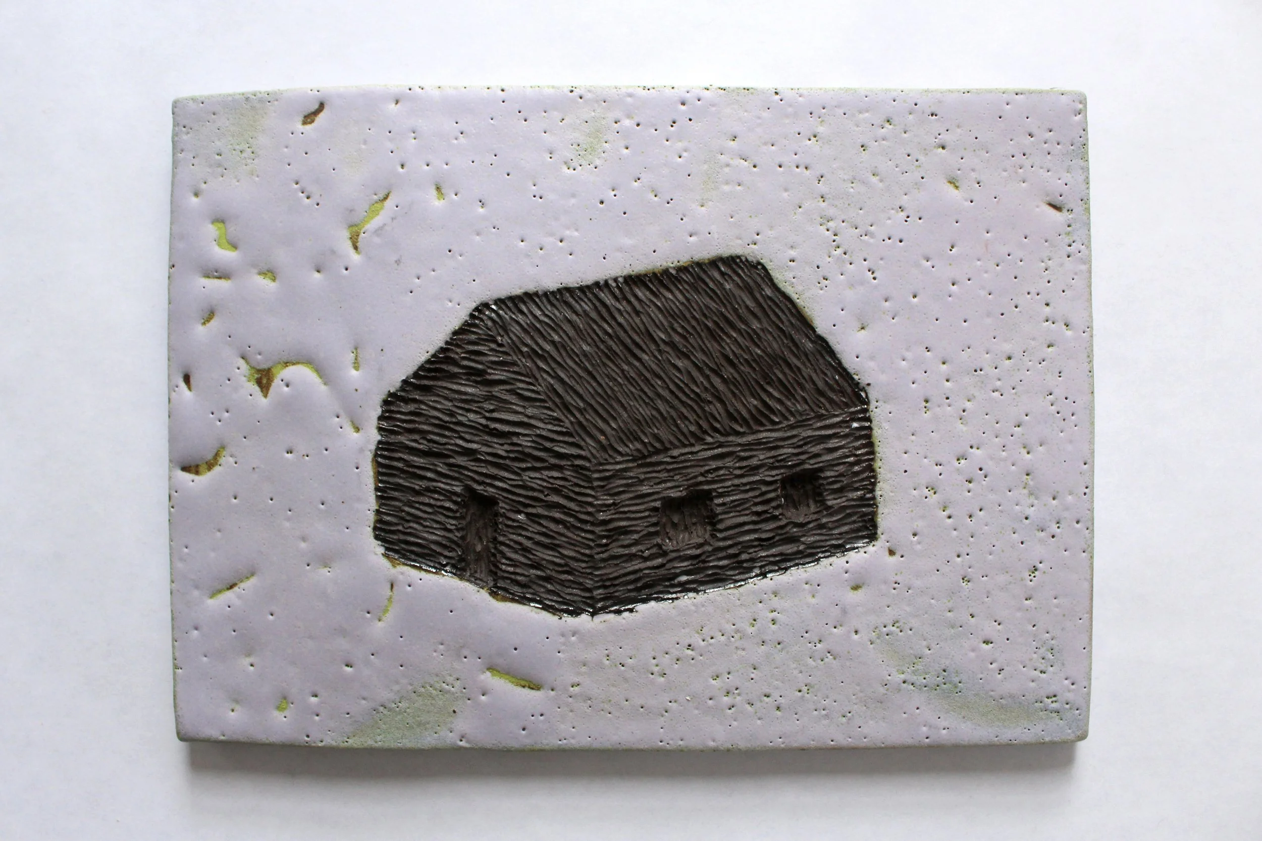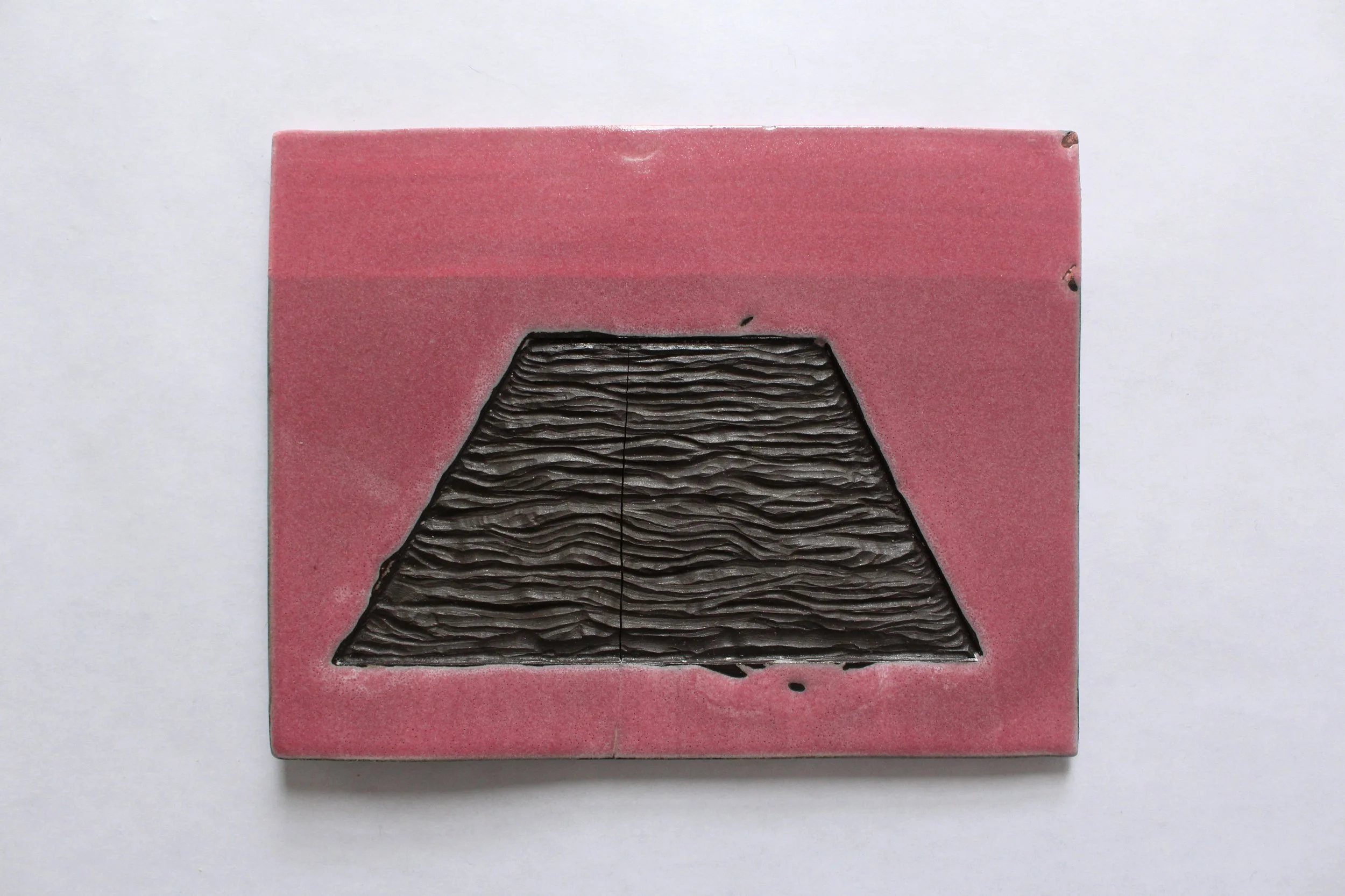 “Plates” is a series of illustrative ceramic slabs, made of stoneware, underglaze, and glaze. They depict familiar scenes such as a pile of sticks, a horse in a field, or a pool. Whether through sculpting, carving, or glazing, the markmaking employed to make these images is physical and material. Each one is a vignette of a fleeting memory in solid form. The title of this body of work alludes to multiple meanings of “plate”: vibrant illustration plates in books, the size of a common dinner plate, the heaviness and hardness of a plate of armor, the drifting tectonic plates of the Earth.